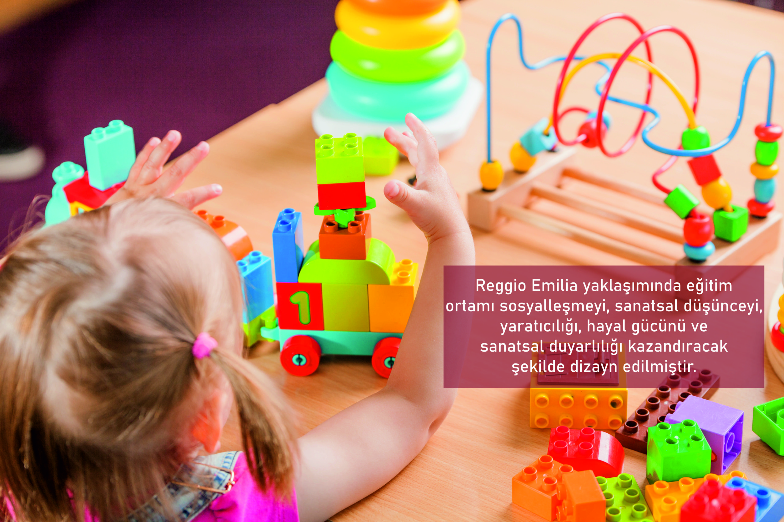Çocuklar deneyip yanılarak, oyun oynayarak, beş duyusunu aktif olarak kullanarak, kendini özgürce ifade ederek, okulun farklı alanlarında dolaşarak, öğretmeni ile etkileşim halinde kalarak, sorular sorup açık uçlu materyallerle oynayarak gelişir ve öğrenir.